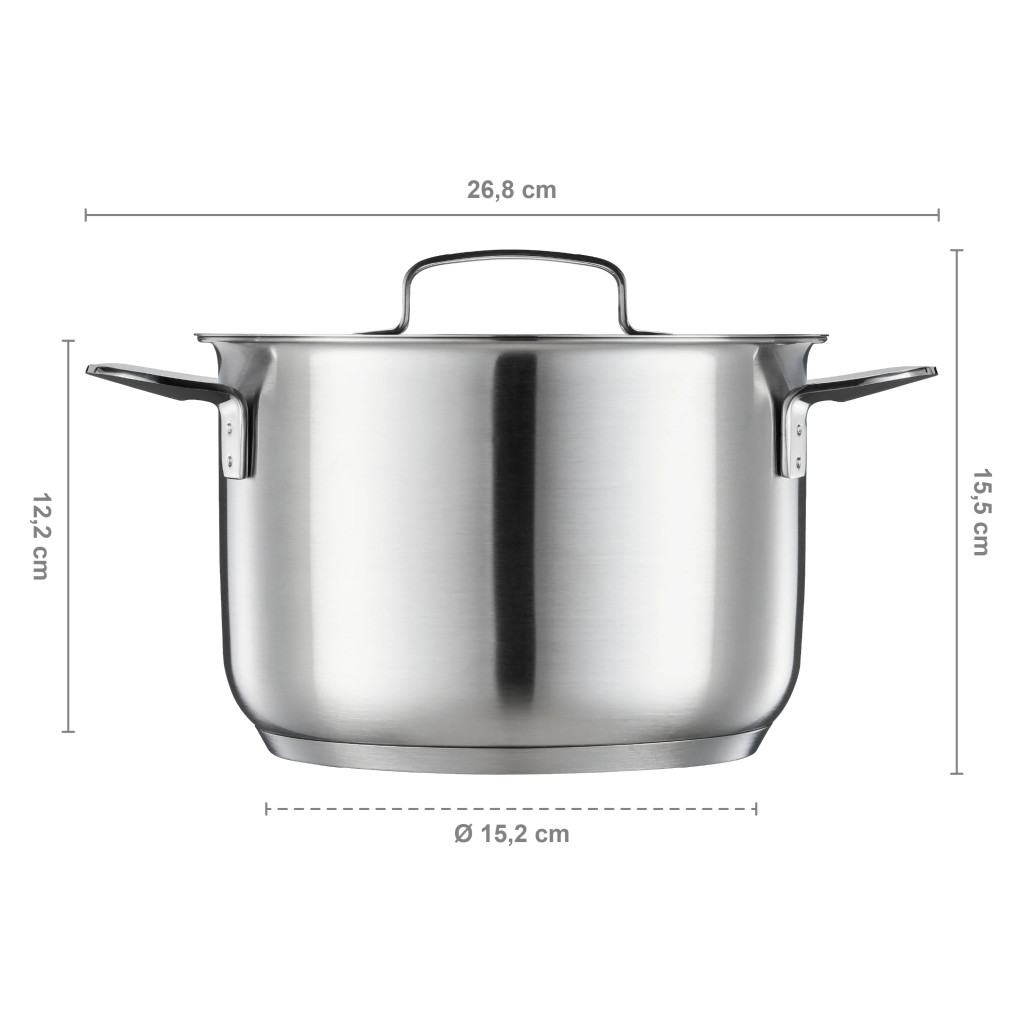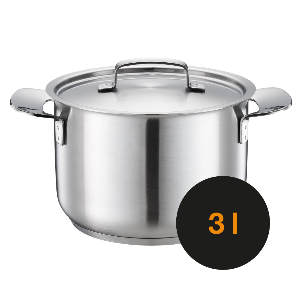 A Fiskars All Steel lábas (3 liter) a fenntarthatóság jegyében készült, a mindennapi főzés során is luxus érzetet nyújtva. Ez a strapabíró edény Finnországban, környezetbarát módon, legalább 90%-ban újrahasznosított rozsdamentes acélból készül. A vastag, háromrétegű aljának köszönhetően minden típusú tűzhelyen egyenletesen melegszik fel, biztosítva a tökéletes főzési eredményeket.