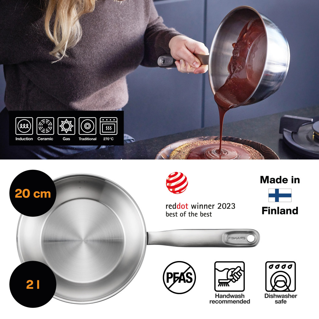 A Fiskars All Steel párolóedény (2 liter, 20 cm) a rozsdamentes acél eleganciájával és a fenntarthatóság iránti elkötelezettséggel emeli új szintre a főzési élményt. Ez a bevonat nélküli párolóedény Finnországban készül, újrahasznosított anyagokból, így minimalizálja a környezeti hatást. Élvezze a tökéletes párolást a kiváló hőeloszlásnak és a tartós kialakításnak köszönhetően!