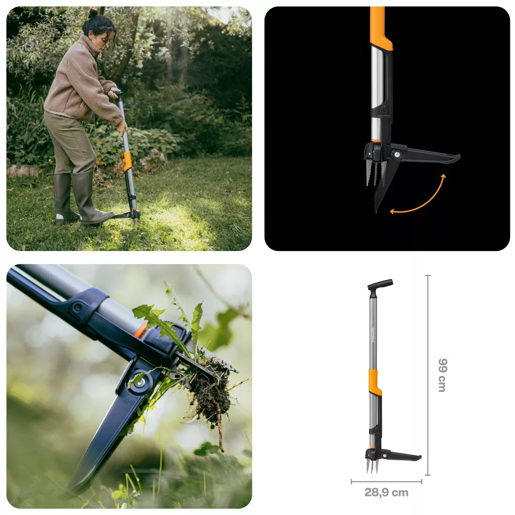 A Fiskars Ergonomic™ gyomkiszedővel búcsút inthet a fárasztó és hátfájást okozó gyomlálásnak, mely innovatív kerti szerszám optimális ergonómiával és hatékony gyomirtással segíti a természetes kertek gondozását.