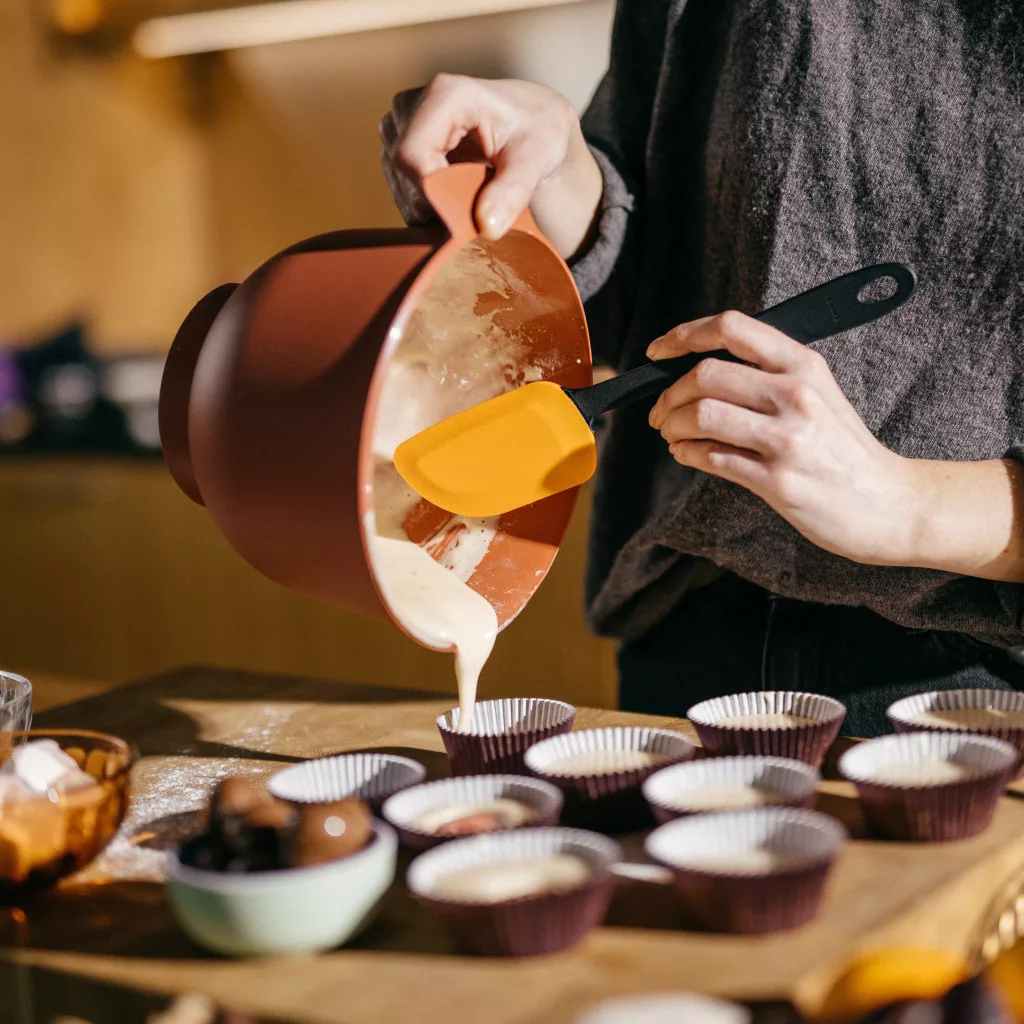 - Nem karcolja a formát, edényt vagy serpenyőt a rugalmas, puha szilikonnak köszönhetően.