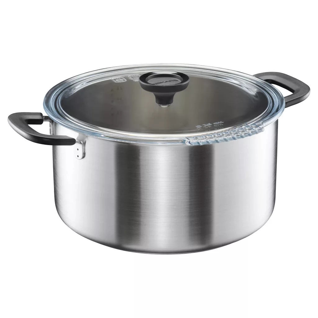 A Fiskars Functional Form™ 7 literes lábas a mindennapi főzés nagykapacitású hőse – ideális levesekhez, pörköltekhez, befőzéshez vagy nagyobb adag alapanyag előkészítéséhez.
