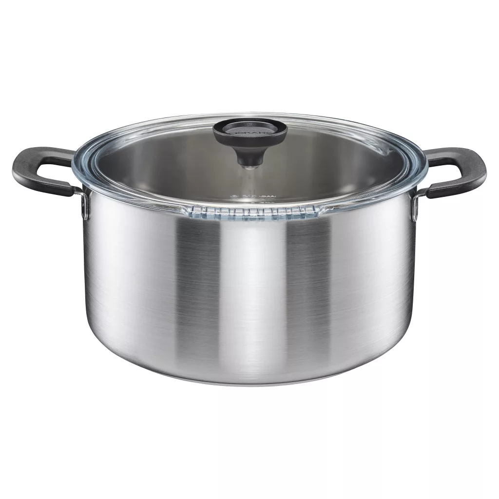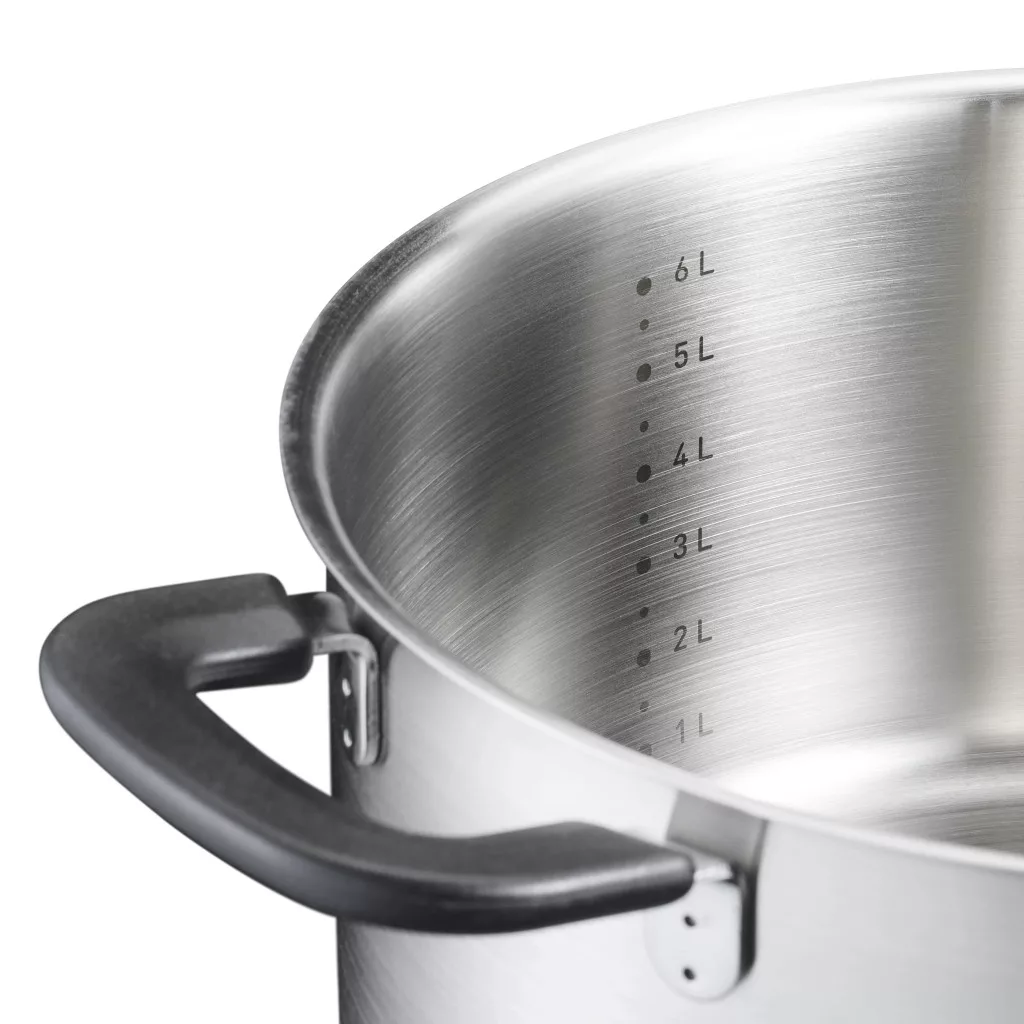A 90%-ban újrahasznosított rozsdamentes acél egyenletes hőelosztást biztosít, így az étel minden ponton tökéletesen megfő. Az üvegfedél beépített szűrővel megakadályozza a túlforrást és megkönnyíti a leöntést, míg a lapos kialakításhelytakarékos tárolást biztosít.