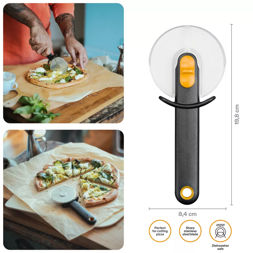 Rendeld meg most a Fiskars Functional Form™ pizzaszeletelőt, és élvezd a gyors, biztonságos és higiénikus szeletelést minden alkalommal!