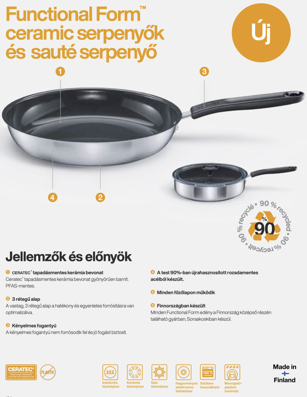 - Kerámia bevonat: A Ceratec™ bevonat tapadásmentes és könnyen tisztítható, mosogatógépben is mosható.