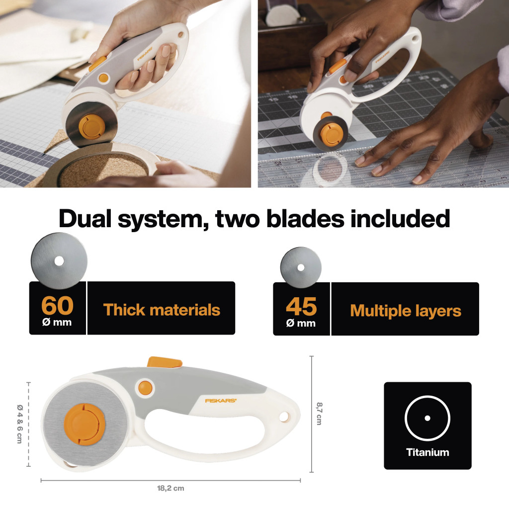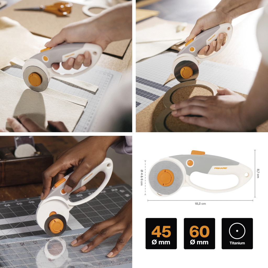 Válassza a Fiskars Görgős vágót váltható pengével (1066048) a precíz és biztonságos vágásért, a hosszú élettartamért és a sokoldalú felhasználhatóságért, és tegye még hatékonyabbá kézműves projektjeit!