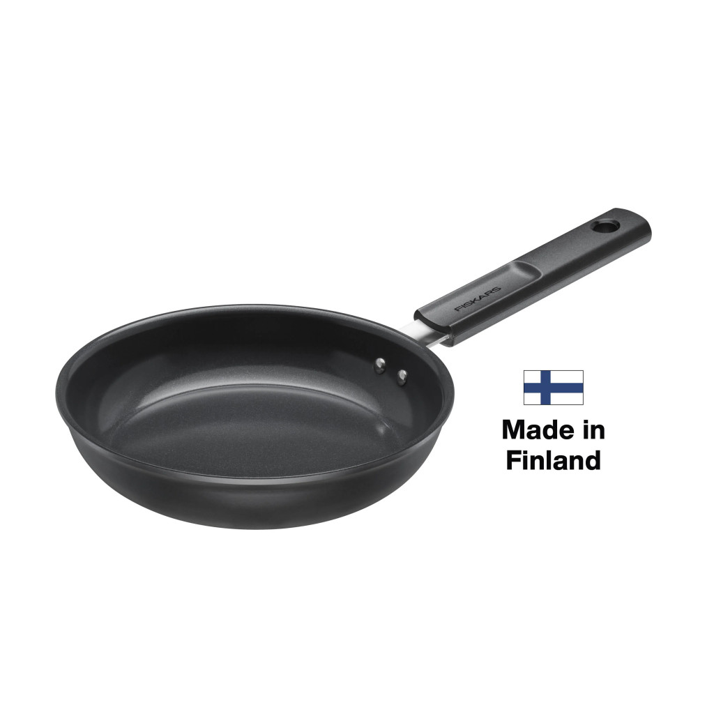 - A Finnországban gyártott Fiskars Hard Face 20 cm-es serpenyő műanyagmentes és tapadásmentes bevonattal a legigényesebb otthoni szakácsok igényeit is kielégíti.