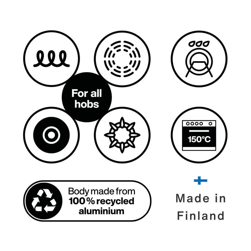 - 100%-ban újrahasznosított alumínium: A serpenyő teste környezetbarát anyagokból készült.