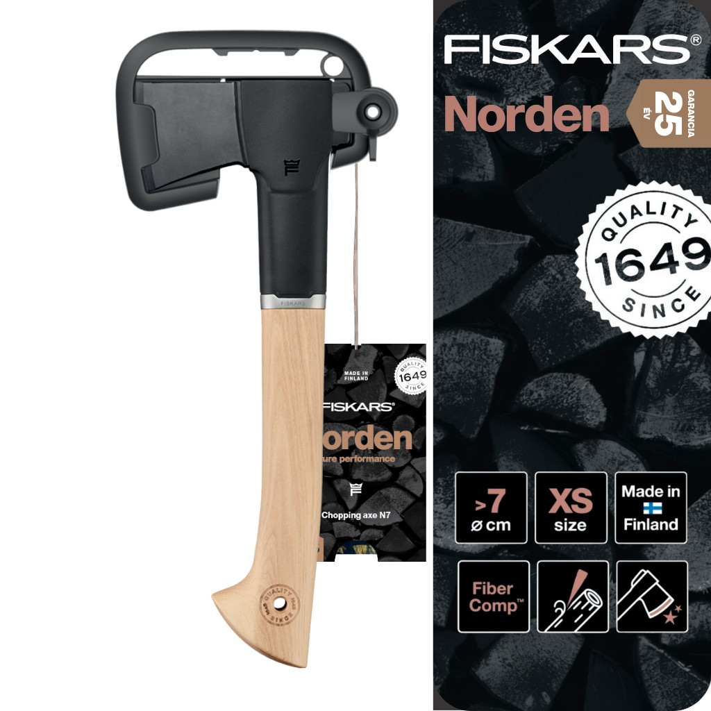 A Fiskars Norden kemping fejsze N7 (1051142) az északi fejszekészítési hagyományok tiszteletben tartásával készült, kis általános célú fejsze, amely ideális metszéshez, kis fák aprításához és gyújtogatáshoz. A fejsze nyél kiváló minőségű hickory fából készült, és az új FiberComp™ gallérnak köszönhetően gyakorlatilag törhetetlen. A fejsze Finnországban készül, és egyesíti a tartósságot, a penge és a tengely közötti tökéletes egyensúlyt, valamint a fejlett pengeformát és a rendkívül éles szöget, amelyek maximalizálják a termék teljesítményét.