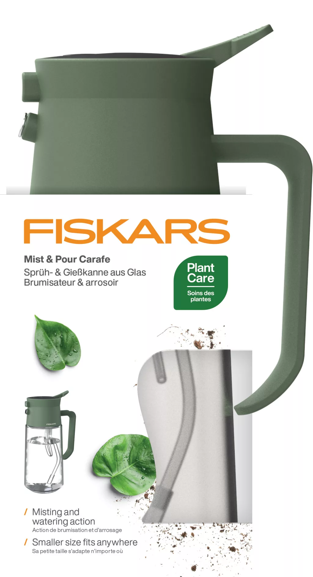 A Fiskars Plant Care permetező és öntözőkanna a növénybarátok nélkülözhetetlen kiegészítője, amely két funkciót egyesít egy elegáns, prémium üveg dizájnban, megkönnyítve otthoni növényeid gondozását.