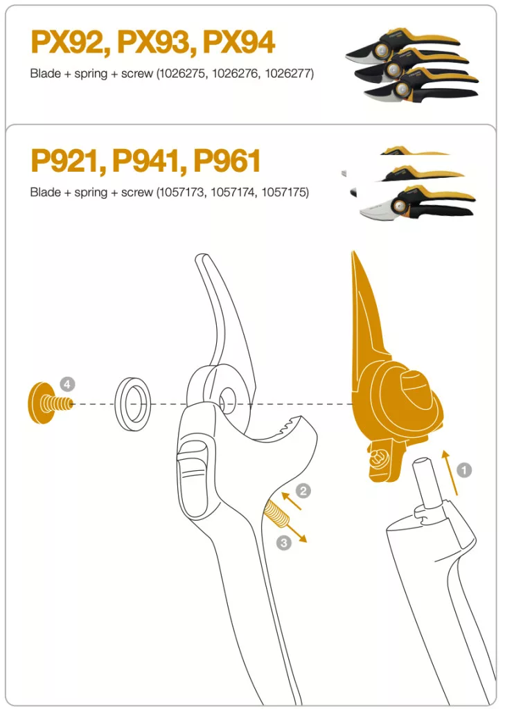 Pótpenge, rugó és csavar az X-series L metszőolló, mellévágó P961-es típushoz (1057175)