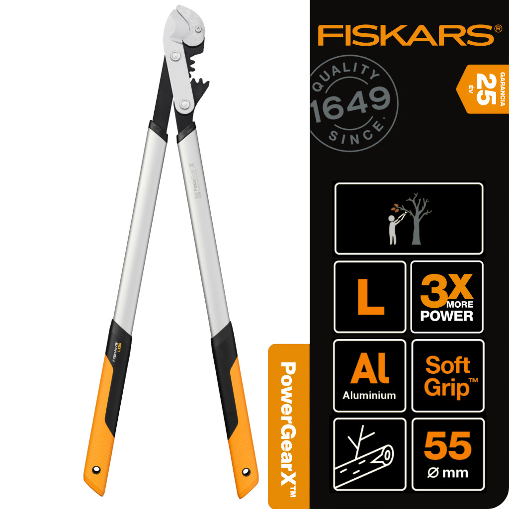 A Fiskars PowerGear X LX99 fém fogaskerekes ágvágó ideális választás, ha száraz, ellenálló ágakat kell rendszeresen metszened. A rávágó (anvil) mechanizmus és a PowerGear™ technológia akár 3,5-szeres erőátvitelt biztosít, így a legmakacsabb, 5,5 cm-es száraz ágak is könnyedén vághatók – felesleges erőlködés nélkül.