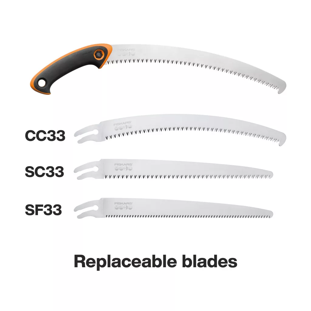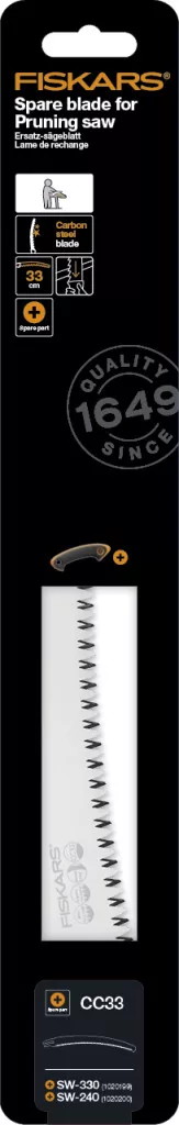 A Fiskars Pro fűrészhez cserélhető penge CC33 (1020193) ideális választás azok számára, akik gyors és hatékony vágási feladatokat szeretnének elvégezni kevesebb mozdulattal. Ez a penge kifejezetten a SW-330 (1020199), SW-240 (1020200) fűrészekhez, valamint a 1023633 ágfűrészhez készült.