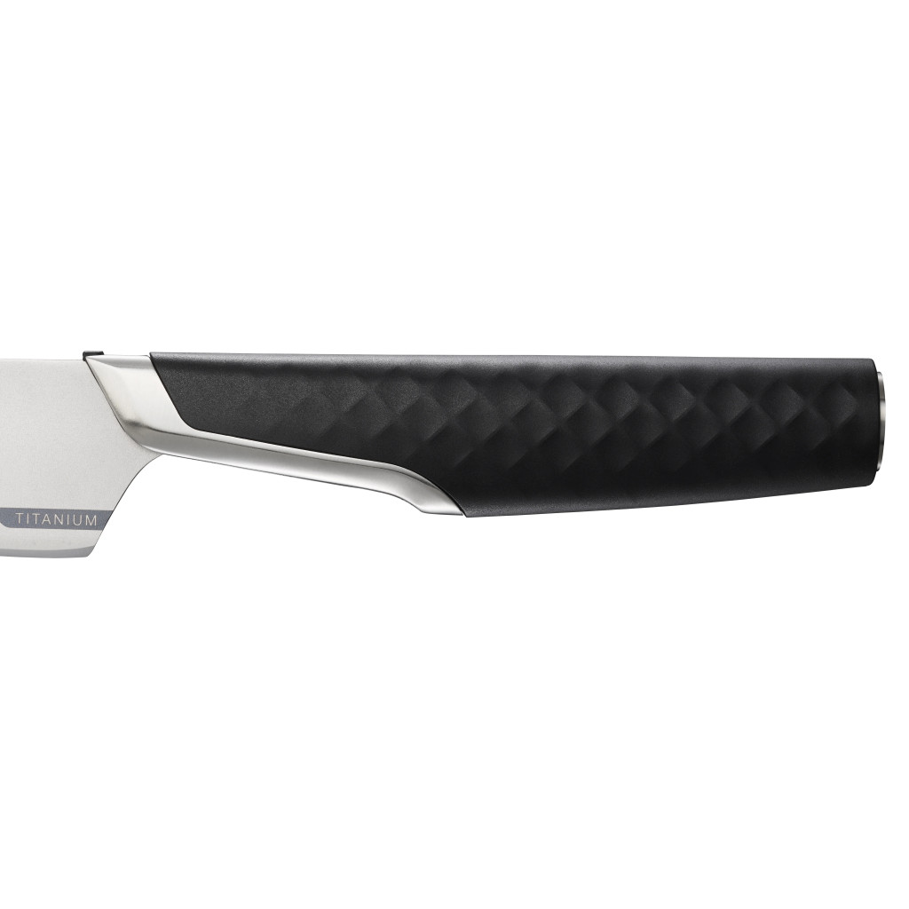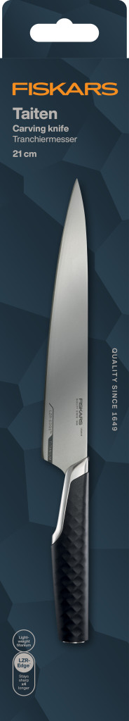 A Fiskars Taiten késsorozat célja, hogy a főzés során teljes kontrollt és kreativitást biztosítson. A 21 cm-es Taiten kés titán pengéjével rendkívül könnyű, precíz és könnyen használható. A forradalmi LZR-EDGE™ technológia pedig garantálja a penge hosszantartó élességét.