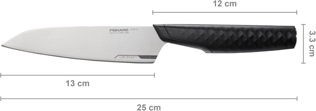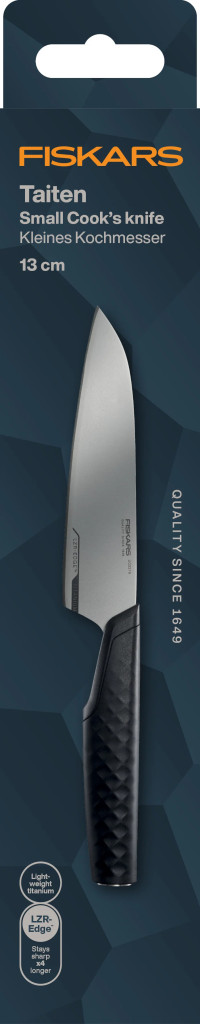 A Fiskars Taiten kis szakácskés a tökéletes választás, ha egy könnyű, precíz és tartós kést keresel a konyhába. A 13 cm-es titán pengével rendelkező kés kiválóan alkalmas mindennapi használatra, legyen szó zöldségek aprításáról vagy hús szeleteléséről. A forradalmi technológiának köszönhetően pedig sokáig éles marad.