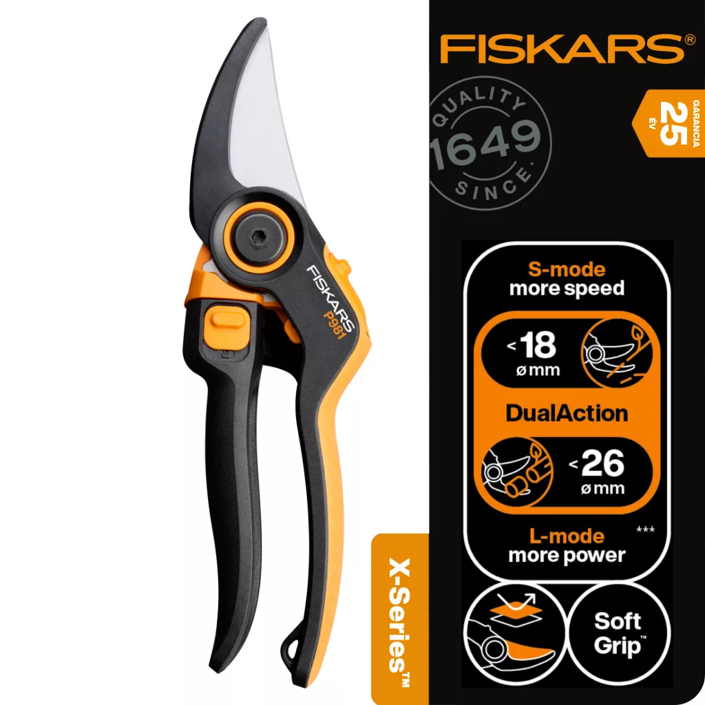 Szerezze be most a Fiskars X-series™ DualAction P981 metszőollót, és élvezze a 25 év garancia nyújtotta nyugalmat a tökéletesen ápolt kertért!