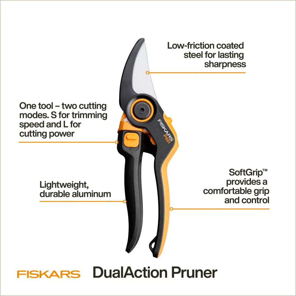 Takarítson meg időt és energiát a kertben a sokoldalú Fiskars X-series™ DualAction P981 metszőollóval, mely 2 az 1-ben vágóerejével és sebességével támogatja a precíz és hatékony metszést.
