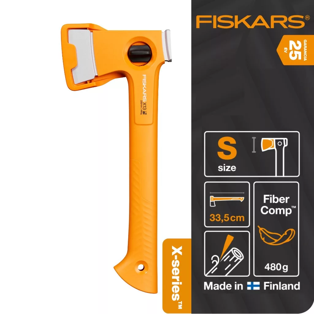 A Fiskars X13 ultrakönnyű kemping fejsze - XXS ideális választás minden túrázó és kempingező számára, akik könnyű és hatékony eszközt keresnek a tűzrakóhelyekhez és egyéb könnyű famegmunkálásokhoz. Az X13 különösen könnyű, 15%-kal könnyebb, mint a többi kompakt X-series™ tengely, ami könnyen hordozható és kényelmesen használható akár egy kézzel is.