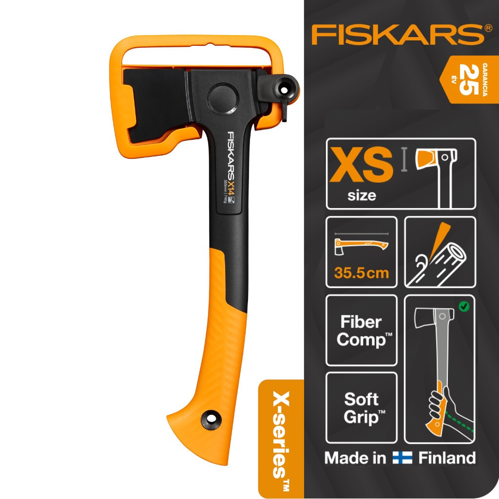 A Fiskars X14 kemping fejsze - XS a kempingezők és a ház körüli munkák során ideális eszköz. Az egykezes használatra tervezett, kiegyensúlyozott fejsze ergonómiai kialakítása és könnyű súlya miatt könnyen kezelhető. A rendkívül éles, kovácsolt acél penge hatékonyan aprítja a fát, míg a súrlódáscsökkentő bevonat megakadályozza a rozsdásodást és a penge elakadását.