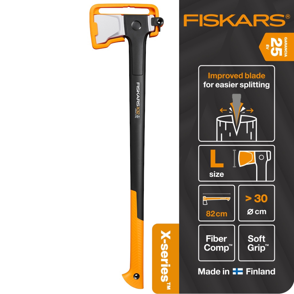 A Fiskars X-series™ fejszék erejét és ergonomiáját egyetlen lendítésből is érezni fogja: az X32 tökéletes egyensúllyal, kifinomult mozgással és nagy hasítóerővel dolgozik, így gyorsan és hatékonyan választja ketté a nagyobb rönköket is.