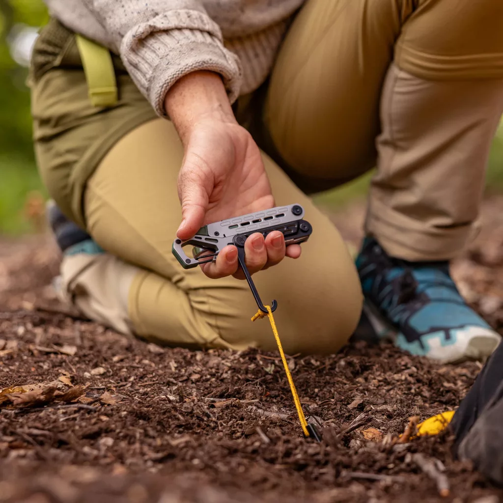 A Stakeout tábori eszköz egy innovatív megoldás, amely 11 különböző funkcióval rendelkezik, így minden helyzetben a segítségedre lesz. A sátorcövek-kihúzóval gyorsan és egyszerűen pakolhatsz össze, míg a beépített karabinerrel könnyedén rögzítheted a hátizsákodra.