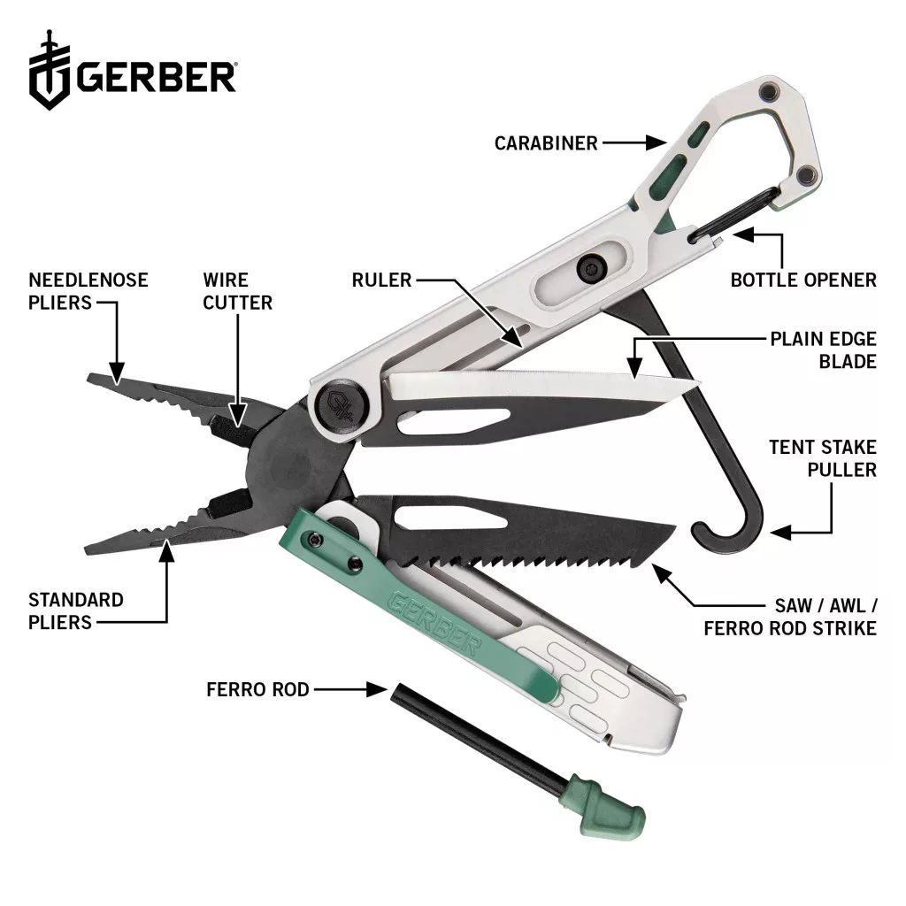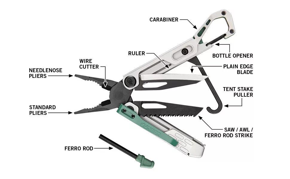 A Gerber STAKEOUT SPARK Kombinált szerszám (cikkszám: 1014860) ideális választás minden outdoor kalandhoz. Ez a multifunkciós eszköz a táborhely kialakításától kezdve a felszerelés karbantartásán át a főzésig mindenben segít. Könnyű súlyának, sokoldalúságának és kompakt méretének köszönhetően tökéletes társ minden utazáshoz, kiküszöbölve a több eszköz csomagolásának szükségességét.