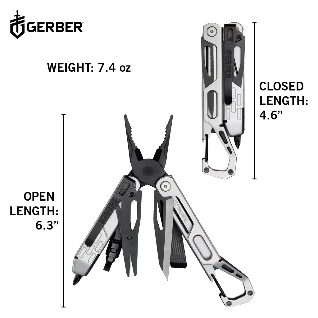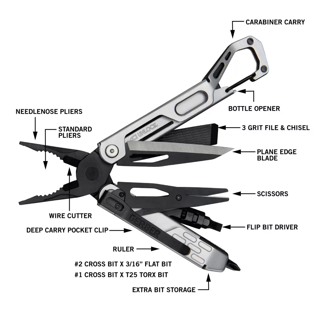 A Gerber STAKEOUT DRIVE Kombináltszerszám, ezüst színben, az Ön megbízható multifunkciós szerszáma a gyors otthoni és útközbeni javításokhoz. Ez a kompakt Gerber szerszám segít rendezni felszerelését, élezni vagy lazítani, egyetlen zsebbarát eszközben.