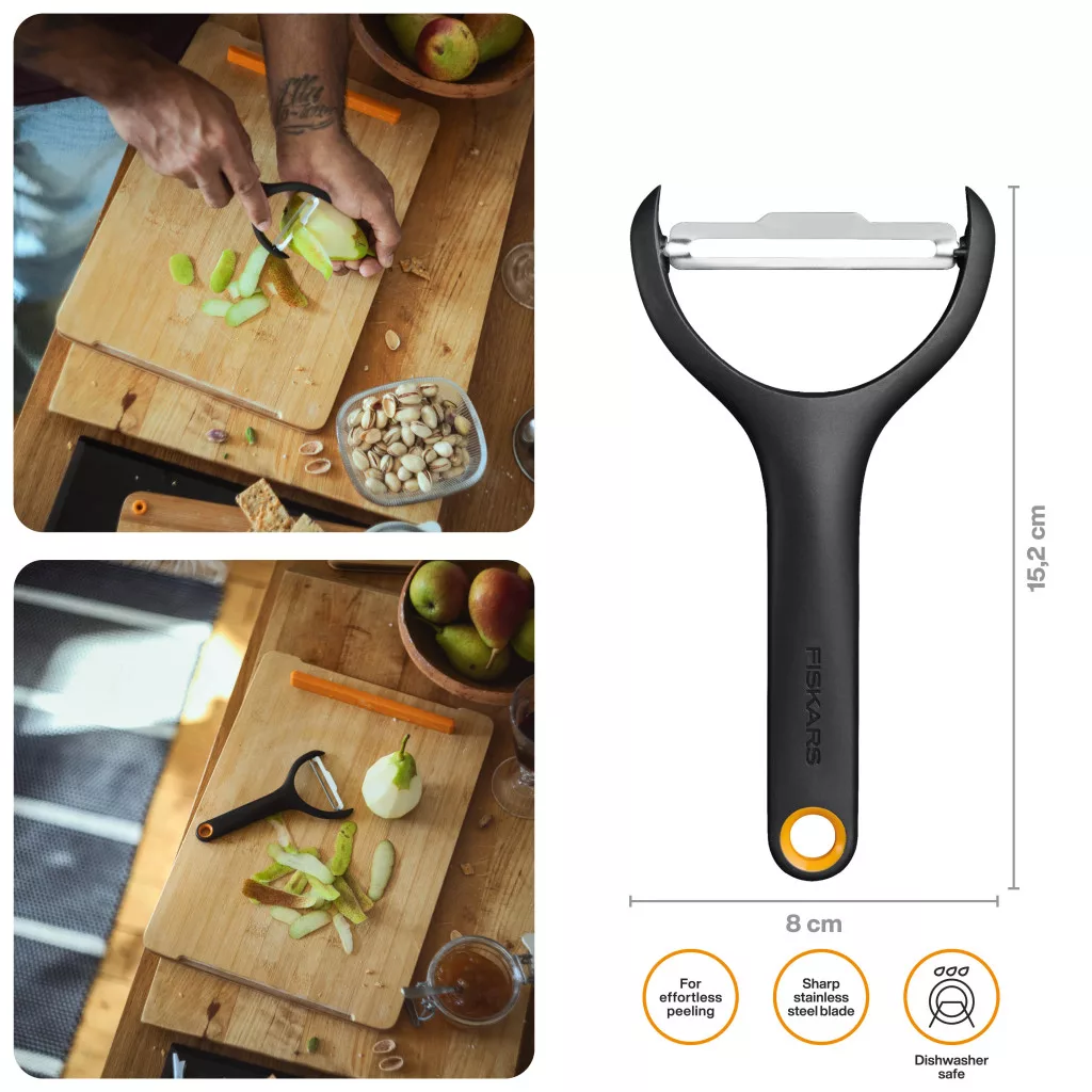 Fokozza a konyhai munkáját és tegye a zöldség hámozást gyerekjátékká: válassza a Fiskars Functional Form™ zöldséghámozót a gyors és kényelmes eredményekért!